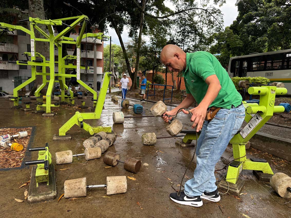 Eduard Londoño lleva nueve años trabajando ahí. En un pequeño quiosco, al frente de la Sección Escuela Hipólito Londoño Mesa, exprime naranjas y vende el jugo solo o le mezcla suplementos alimenticios, si así lo prefiere el cliente. También vende mecato y es un líder comunitario. De manera voluntaria siembra árboles y ayuda a hacerles mantenimiento al gimnasio al aire libre y al jardín. Además, se lee unos 12 libros al año y esa pasión lo llevó a crear un círculo de lectores que tiene cerca de 90 integrantes de la zona, en el que intercambian libros e información sobre obras y autores.