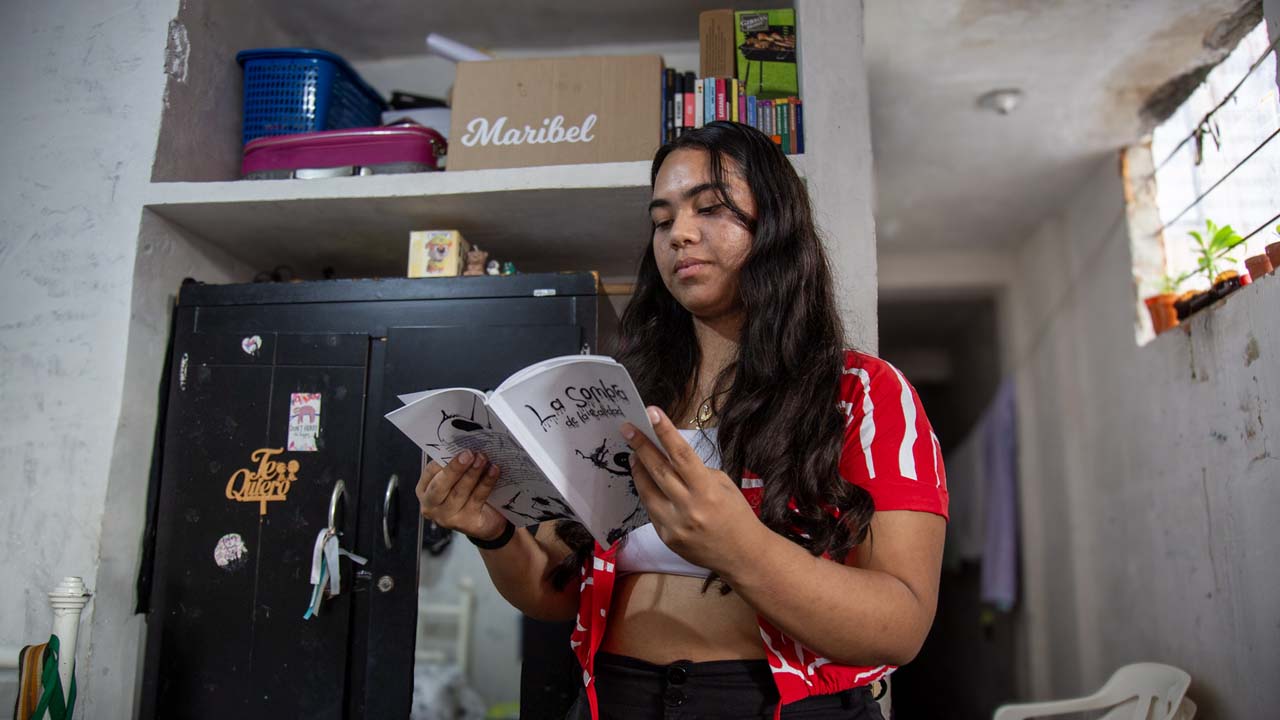 En un humilde cuarto, rodeada de una cama doble con un par de peluches, una fotografía de su grado como bachiller colgando en la cabecera, un escritorio tubular desgastado y un escaparate negro con un par de calcomanías, Maribel escribía cuentos cuando las ideas llegaban. Lo hacía a mano, en hojas sueltas.