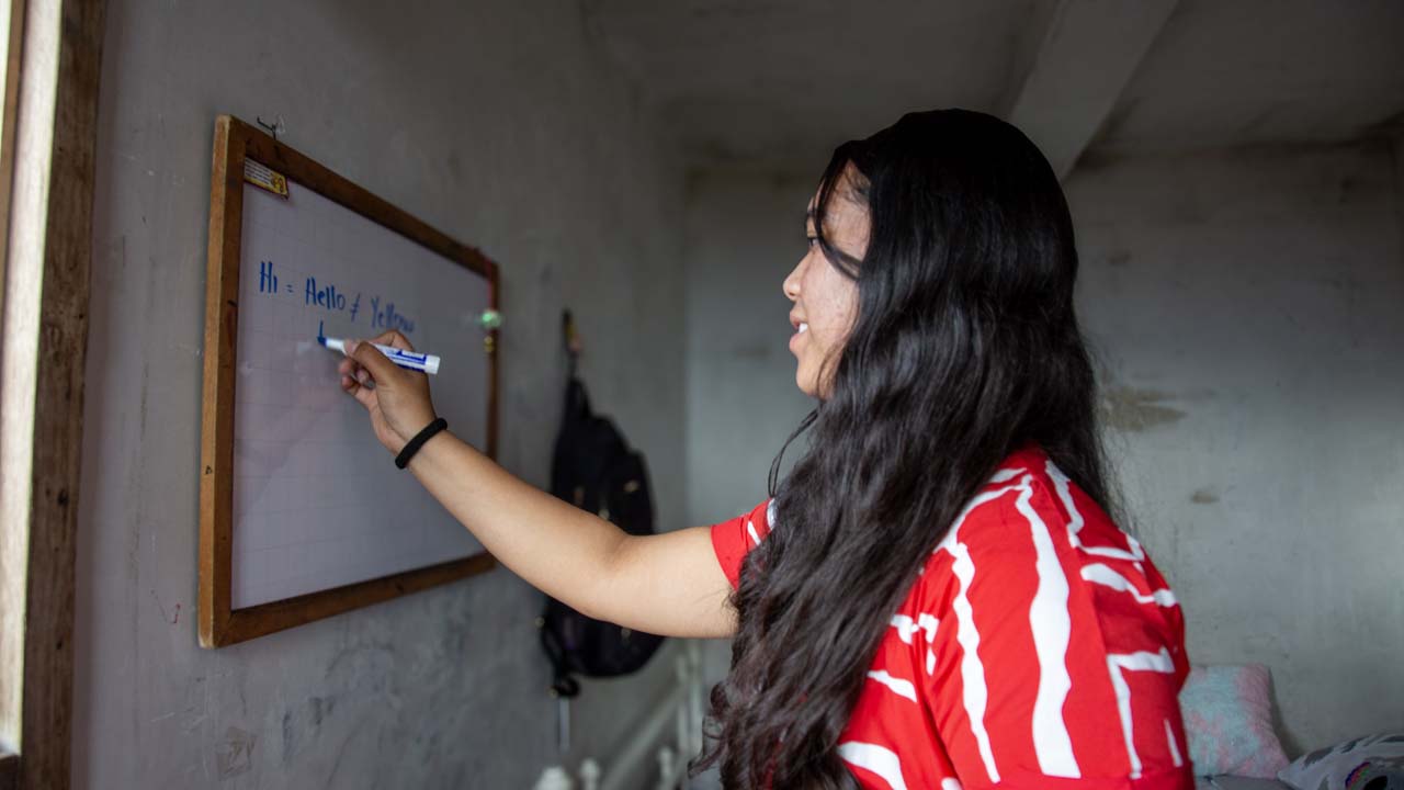 Desde su casa humilde de ladrillo, un piso de cemento en Enciso, rodeada de pendientes, tejados y del correr de la quebrada, Maribel sueña con enseñar, viajar y seguir escribiendo en español y en inglés.