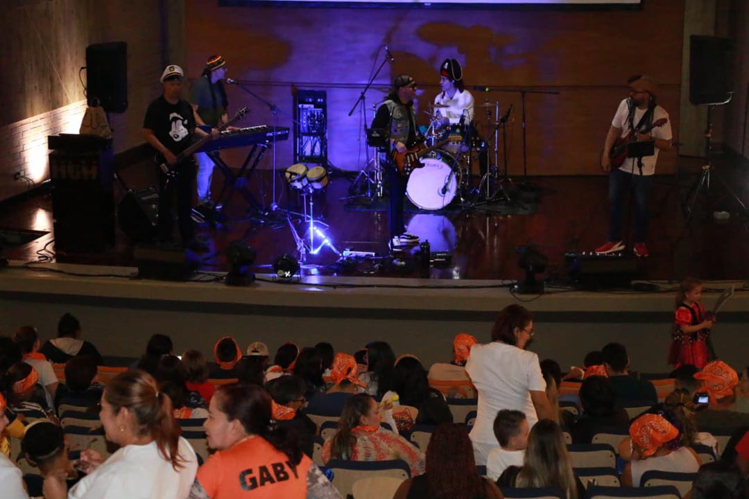 Esta vez y por primera ocasión, dieron un concierto para niños y niñas. El escenario fue el auditorio del Hospital General de Medellín, en donde de a poco los pequeños, junto con sus padres y adultos tutores, fueron ingresando para disfrutar de este espectáculo. La mayoría estaban disfrazados como corresponde a estos días en que se celebra el tradicional Halloween en nuestro país.