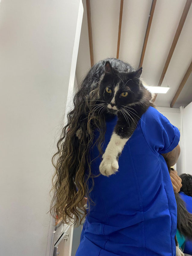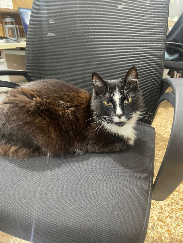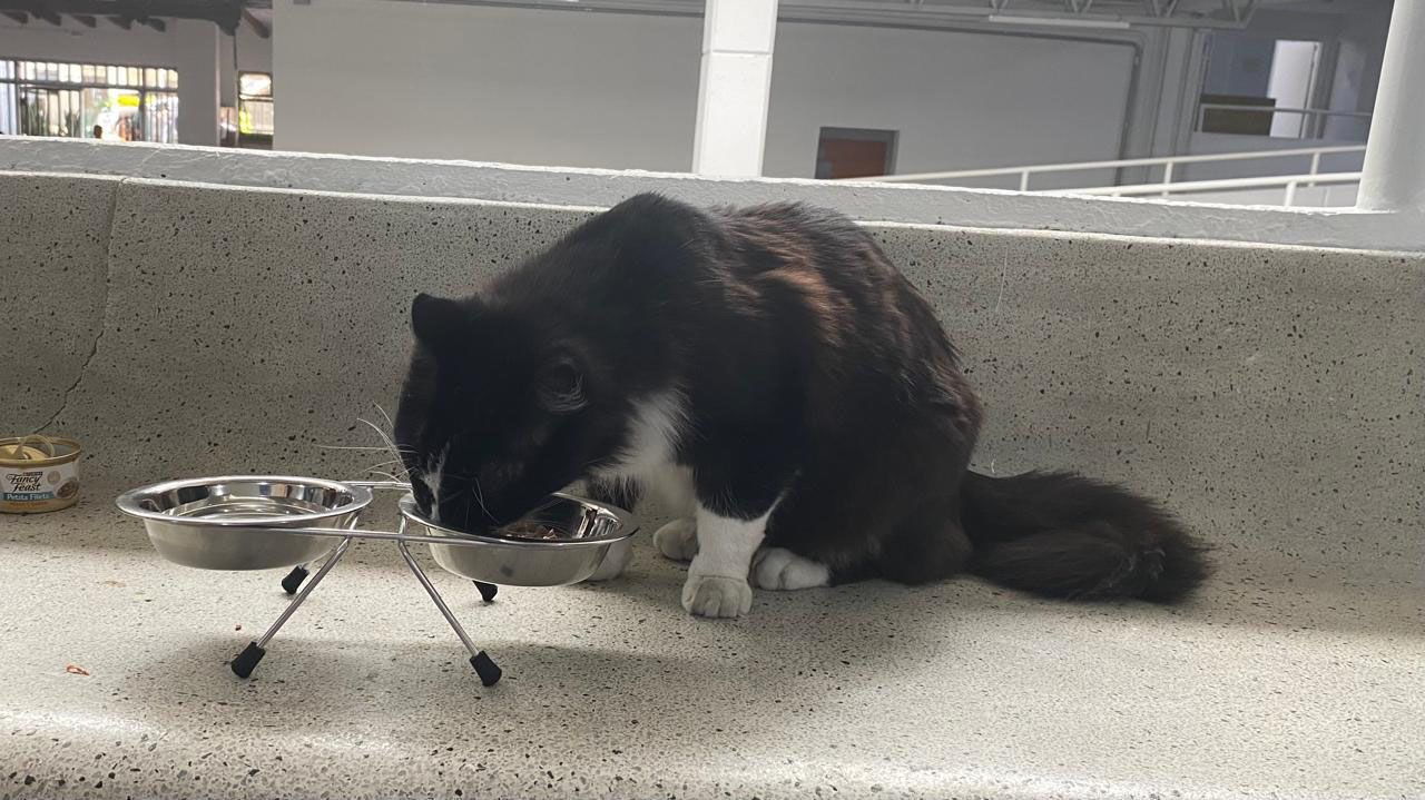Como el centro de salud funciona las 24 horas, el gato organiza su agenda mejor que cualquiera. En el día puede estar en un área, en la noche en otra. Cuando notaron que podía estar comiendo doble ración porque lo consentían en ambos lugares, decidieron coordinar.