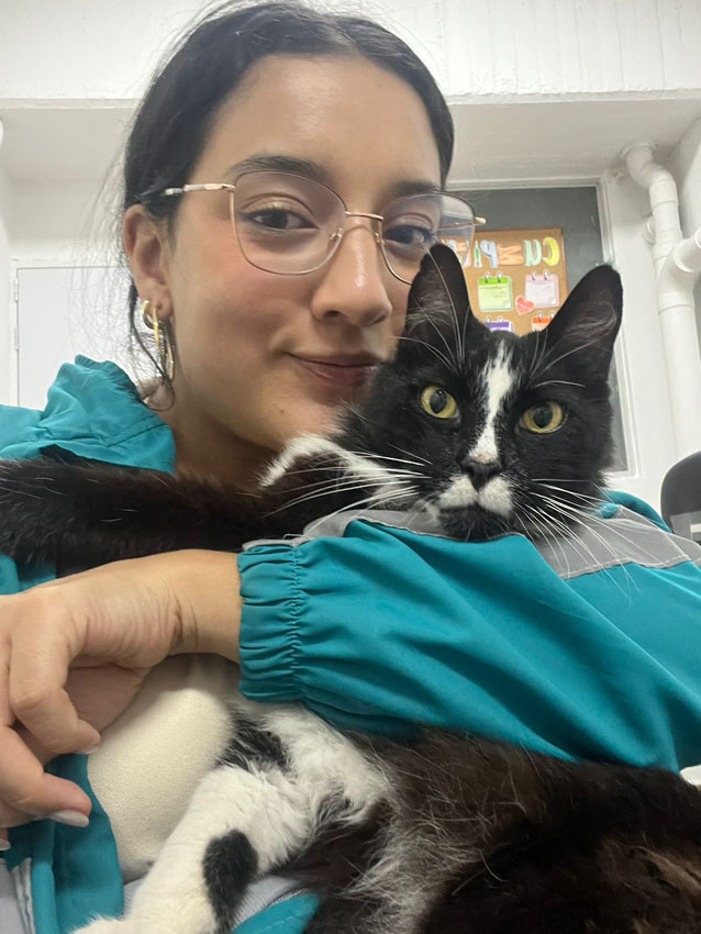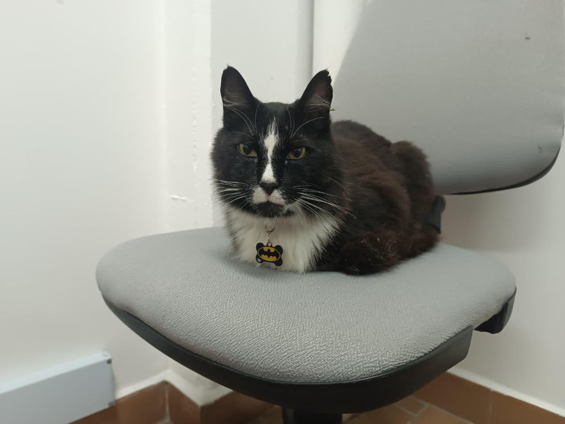 Y es que este felino, aparte de darles muchas alegrías, también les ha dado sus buenos sustos. A veces, en los turnos de noche, escuchaban golpes fuertes en la puerta. Tres toques secos que las hacían pensar cualquier cosa. “Una vez abrimos y era Michín parado ahí”, cuenta riéndose. “Ya después entendimos que alguien lo veía afuera y tocaba para que le abriéramos al gatico”.
