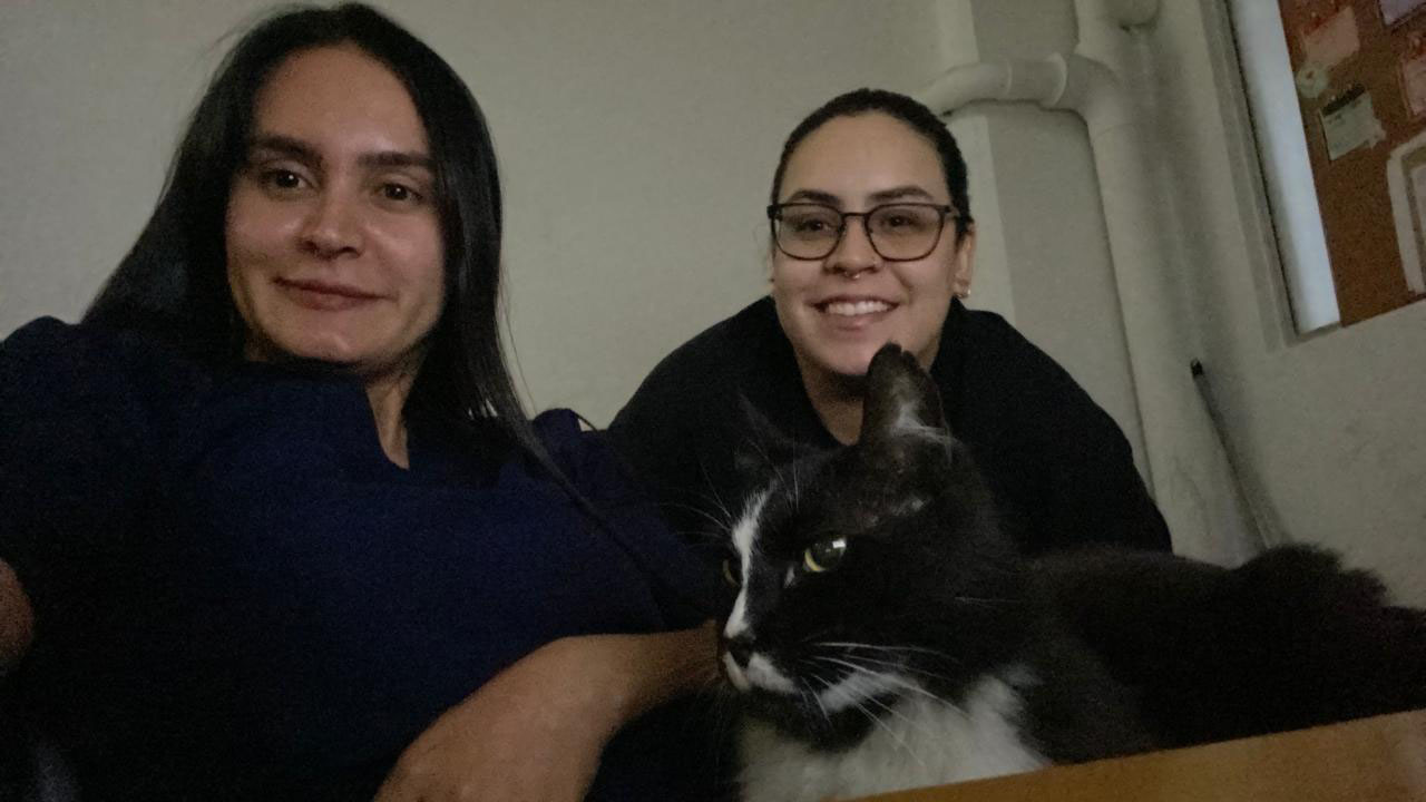 Y es que este felino, aparte de darles muchas alegrías, también les ha dado sus buenos sustos. A veces, en los turnos de noche, escuchaban golpes fuertes en la puerta. Tres toques secos que las hacían pensar cualquier cosa. “Una vez abrimos y era Michín parado ahí”, cuenta riéndose. “Ya después entendimos que alguien lo veía afuera y tocaba para que le abriéramos al gatico”.