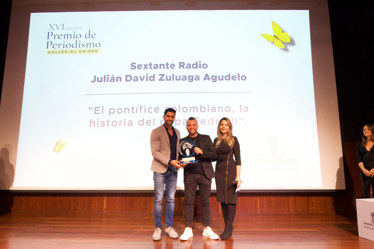 En la décimo sexta edición del Premio de Periodismo Alcaldía de Medellín “Volver al origen” se entregaron los galardones, en nueve categorías, como reconocimiento a la producción periodística de procesos y medios de comunicación alternativos, independientes, comunitarios y ciudadanos, en formatos impreso, audiovisual, radial, escrito, multiformato y digital, así como a los mejores trabajos realizados por concesionarios radiales, medios corregimentales y universitarios.