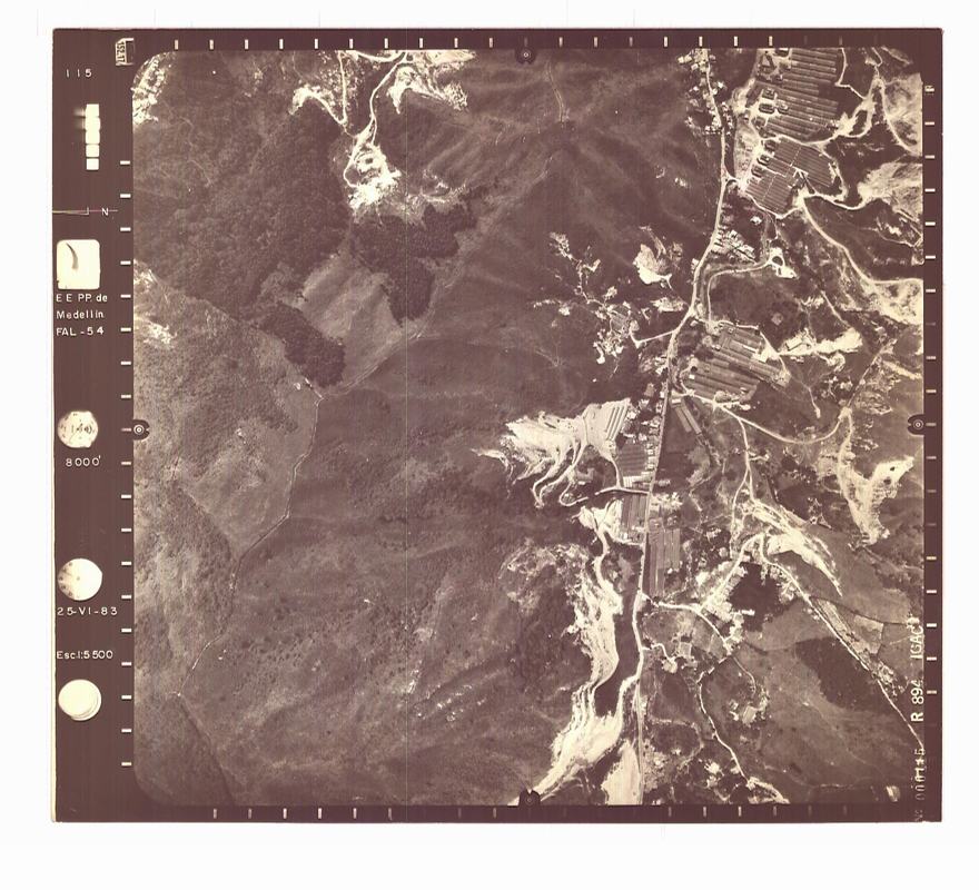 Aerofotografía para el estudio del terreno y la construcción de mapas de la zona urbana y rural de Medellín que fueron tomadas el mes de junio del año 1983 por la empresa FAL para Empresas Públicas de Medellín. Escala aproximada 1:5.000. Resolución de imagen aproximada de 40 cm. Fotografía escaneada mediante un escáner no fotogramétrico por lo que su uso debe ser estrictamente temático. Se realizo una georreferenciación con al menos tres puntos de control con una solución simple afine.