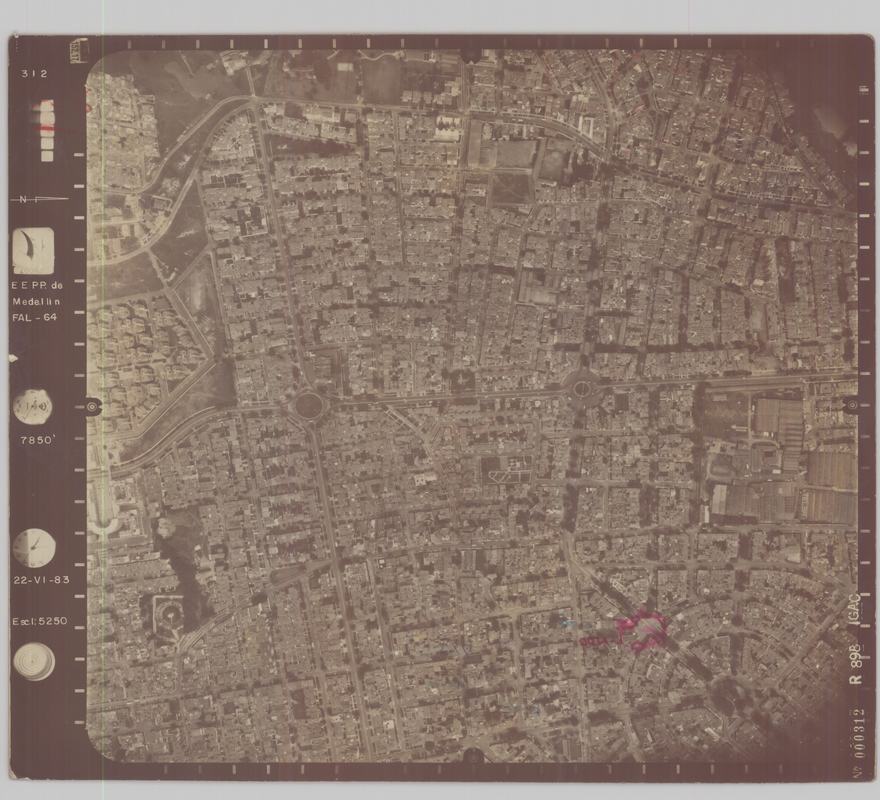 Aerofotografía para el estudio del terreno y la construcción de mapas de la zona urbana y rural de Medellín que fueron tomadas el mes de junio del año 1983 por la empresa FAL para Empresas Públicas de Medellín. Escala aproximada 1:5.000. Resolución de imagen aproximada de 40 cm. Fotografía escaneada mediante un escáner no fotogramétrico por lo que su uso debe ser estrictamente temático. Se realizo una georreferenciación con al menos tres puntos de control con una solución simple afine.