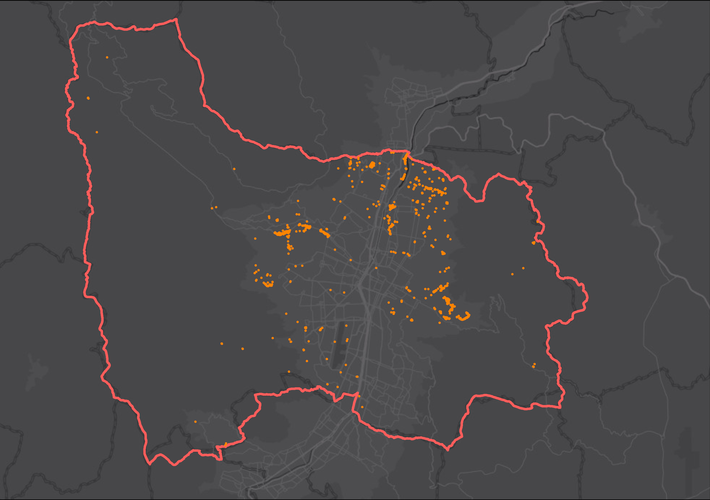 Representa la georreferenciación de los predios bienes público y fiscales en cuanto a sus formas de contratación para la administración y manejo de los bienes inmuebles del Distrito de Medellín. La entrega del bien se realiza a título gratuito u oneroso, por medio de la suscripción de contratos de arrendamiento, comodato, servidumbre, administración del espacio público, compraventa, convenios de asociación y todos los demás regidos por las normas civiles y comerciales.
