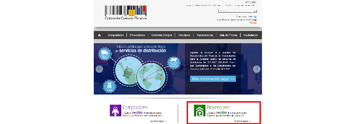 - Dentro del sitio Web www.colombiacompra.gov.co, identifica el botón de PROVEEDORES.