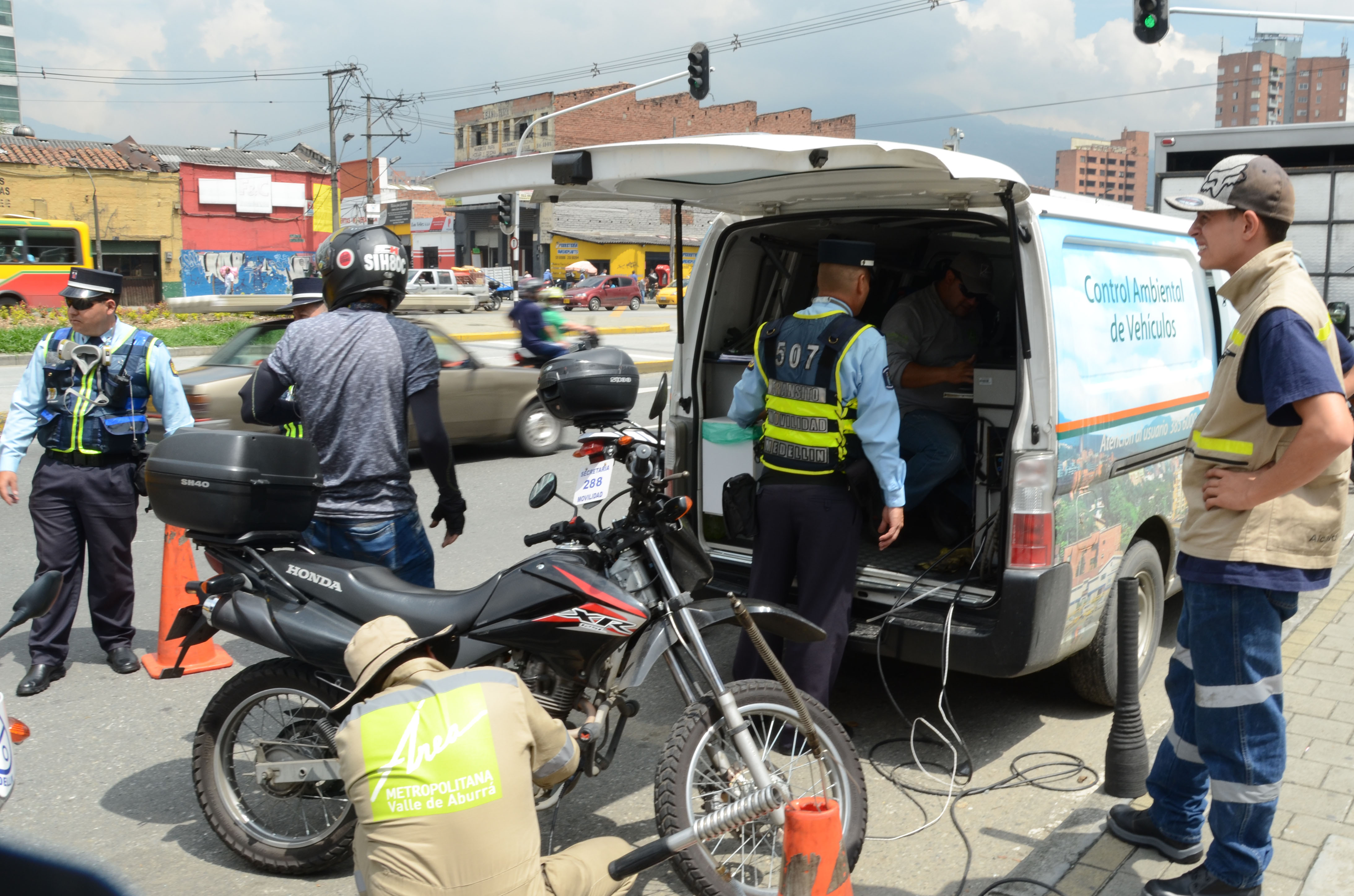 Portal de Medellin/Temas/Atención Ciudadana/Noticias/2017/EneroJunio Foto: Controles ambientales en la ciudad Fotógrafo: Olegario Martínez 2017-03-31 Medellín sigue comprometida con la calidad del aireEdwin EcheverriPalabras del secretario de Movilidad, Juan Esteban Martínez Hasta el 30 de marzo de este año, la Secretaría de Movilidad de Medellín ha realizado 7.646 pruebas de control ambiental a vehículos. El incremento es del 115% con respecto al mismo periodo del año anterior en el que se hicieron 3.492 pruebas. Durante este año, 4.195 vehículos evaluados han aprobado los controles. 3.451 pruebas han sido rechazadas por no cumplir con las exigencias ambientales. Cada mes se aumenta el número de controles: en enero se hicieron 1.865 pruebas, en febrero 2.690 y en marzo (hasta el 30) se han realizado 3.091. La Secretaría de Movilidad no para de realizar este tipo de operativos ambientales durante todo el día en diferentes vías de la ciudad, e incluso hace controles nocturnos. Adicionalmente a las labores en los puestos de control a gases, este año los agentes de tránsito han realizado 11.174 comparendos por no portar la revisión tecnicomecánica y al día. Por fotodetecciones se han hecho 13.768 comparendos. Resumen controles ambientales Durante 2017 (hasta el 30 de marzo) hemos realizado 7.646 pruebas, aumentando en un 115% lo que hicimos en este mismo periodo de 2016 (3.492). Durante este año 4.195 han aprobado, mientras que 3.451 pruebas han sido rechazadas y se han inmovilizado 318 vehículos. El detalle según el tipo de vehículo (hasta 30 de marzo) es: