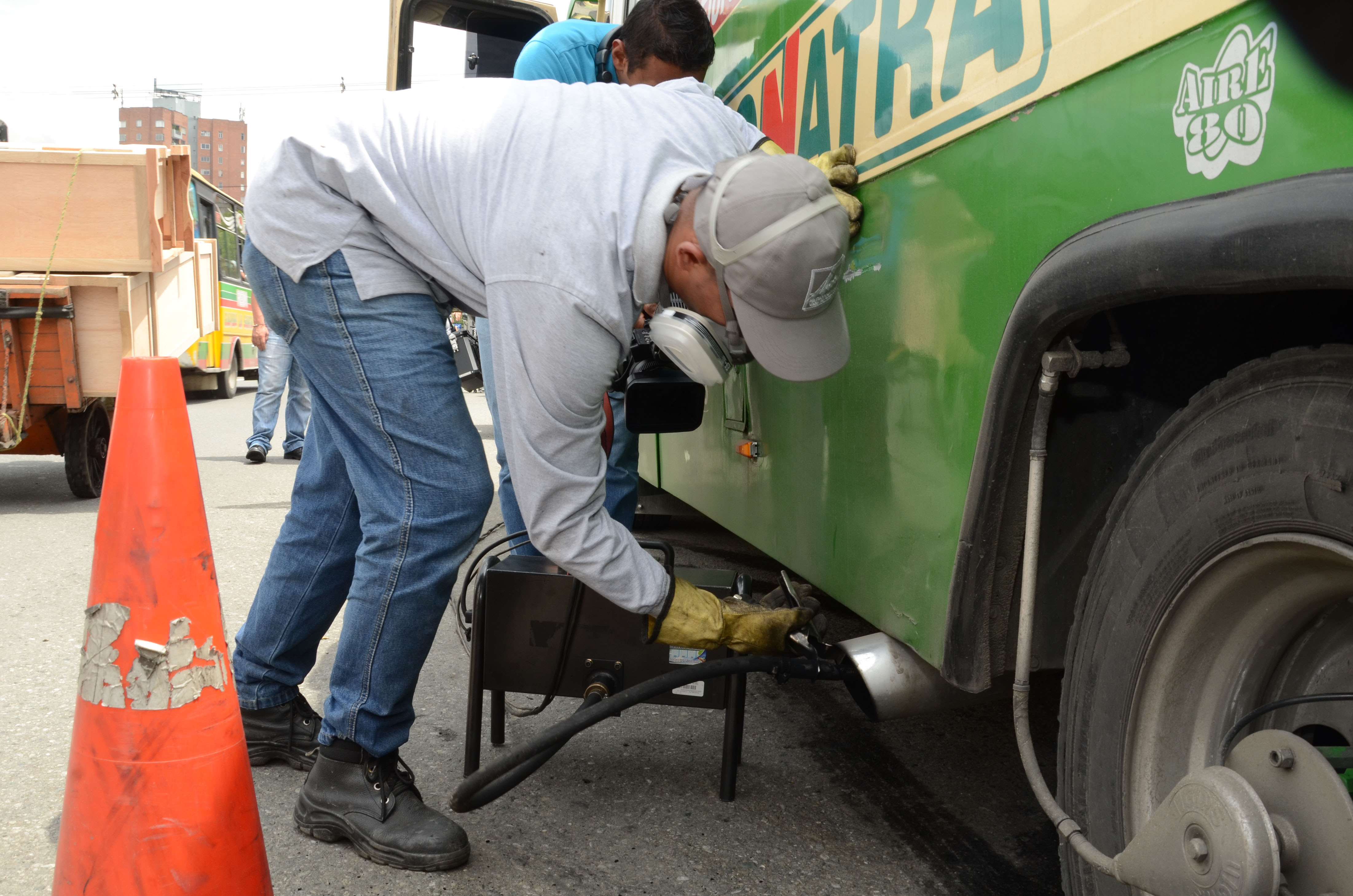Adicional a las labores en los puestos de control a gases, este año los agentes de tránsito han realizado 11.174 comparendos por no portar la revisión tecnicomecánica y al día. Mientras que por fotodetecciones se han hecho 13.768 comparendos. ¿Qué es el GRAM? El objetivo del móvil GRAM (Grupo Ambiental) es realizar controles ambientales a toda clase de vehículos, a los centros de acopios temporales para escombros, a los vehículos de carga, motocarros, al transporte de mercancías peligrosas y las motos que transportan cilindros de glp. ¿Cómo se realizan las pruebas de gases? Las pruebas ambientales se realizan dependiendo del vehículo, en todas se hace una sola prueba que consta de dos partes, la primera es una inspección visual, en la cual el técnico del Área Metropolitana revisa que el vehículo a inspeccionar no tenga fuga de aceite, fuga de combustible, fugas en el sistema de escape (mofle roto), presencia de humo azul, que el sistema de refrigeración este en buen estado, que las revoluciones por minuto (rpm) estén estables y en el rango permitido; y para el caso del diesel, que si tenga gobernador o que este en buen estado (el gobernador es el sistema que no permite pasar las revoluciones del límite máximo establecido por el fabricante). Si el vehículo llega a incumplir alguno de esos ítems, se rechaza la prueba aun sin hacer medición de los gases emitidos por el vehículo. Si el vehículo pasa esa primera fase, entonces se procede a realizar la medición de los gases, ésta se debe hacer, para gasolina en dos partes con la sonda que capta las emisiones incrustada en el mofle, primero una aceleración crucero durante 20 segundos, y luego el vehículo en ralenti también durante otros 20 segundos, luego de eso se arroja un resultado; si este es rechazado se genera un comparendo y se inmoviliza el vehículo, si es aprobado, se entrega el resultado y se le dan 3 meses de vigencia para no realizarle nuevamente la prueba, salvo que haya una contaminación flagrante. Para los vehículos con combustible diesel luego de haber pasado la primera parte, se hace la medición de los gases con una sonda que va en el mofle y es conectada a un opacímetro el cual envía la información al computador de que tan oscuro es el humo que emite, esta prueba debe tener 4 aceleraciones que se hacen a gobernadas (limite máximo de rpm), la primera es un ciclo libre donde hace una limpieza de los humos guardados en los tarros, las otras 3 restantes se toman como prueba, luego el computador hace un promedio entre las 3 mediciones y saca un resultado final, si es aprobado se entrega al conductor pero no se da tiempo de vigencia, si se rechaza, se genera comparendo y se inmoviliza. ¿Qué sanción representa el incumplimiento de esta norma? La infracción en el Código Nacional de Tránsito es la C-35: No realizar la revisión tecnicomecánica y de emisión contaminantes; o cuando aun portando los certificados correspondientes no cuenta con las condiciones técnicomecánicas y de emisiones contaminantes. Representa una sanción de 15 SMDLV ($368.000)y el vehículo es inmovilizado. | |||||||||||||||||||||||||||||||||||||||||||||||||||||||||||||||||||||||||||||||||||||||||||||