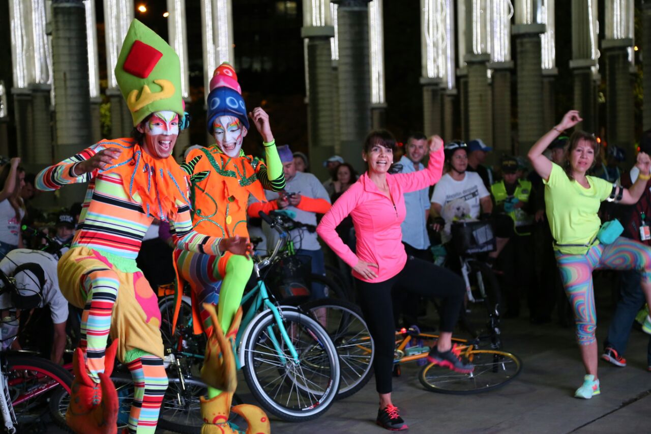 Fotos: Verónica Echeverri. “Me encanta que hagan estos planes diferentes para que los niños, jóvenes y todos en general, se apropien del espacio público,” dijo María Eugenia Gil, quien con su esposo e hijo pedalearon por la noche del Centro. El Parque San Antonio fue el punto de llegada. La luna llena se asomaba para recibir a los ciclistas que terminaban la ruta disfrutando la muestra de tres disciplinas deportivas urbanas: Street Workout, Parkour y Freestyle Frisbee. “¡Sí se puede, sí se puede!” era el grito que adornaba las calles del Centro mientras pasaban los ciclistas que hicieron parte del ciclopaseo nocturno promovido por la Alcaldía de Medellín para apoyar la jornada Medellín Despierta, demostrando que el corazón de la ciudad es un lugar para todos y que puede ser aprovechado para disfrutar la cultura, el arte y la sana diversión.
