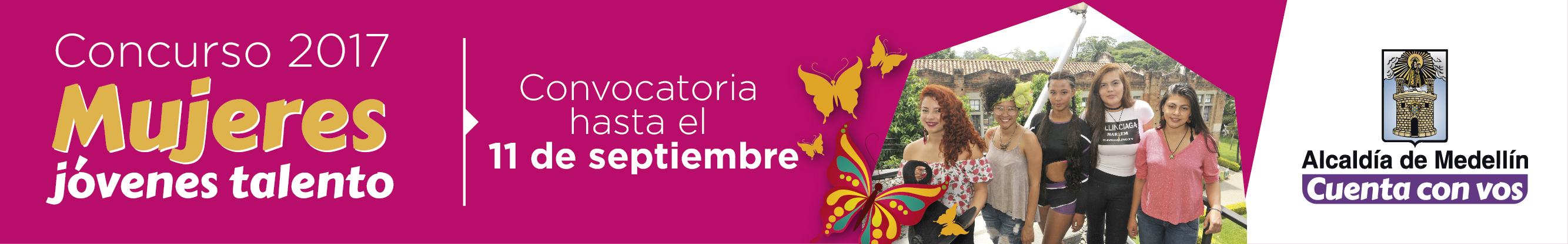 La Alcaldía de Medellín, a través de la Secretaría de las Mujeres, y en cumplimiento del Decreto 0615 de 2017, realiza el Concurso Mujeres Jóvenes Talento- Medellín, el cual apoya y exalta las capacidades de las mujeres jóvenes de Medellín.