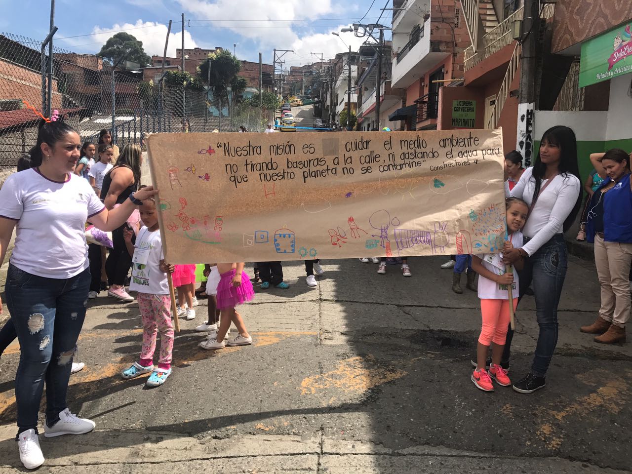 Divididos en cuatro comités (aseo, baile y canto, pintura y perifoneo), alrededor de 25 niños, junto a padres de familia y agentes educativos, recorrieron las calles de su barrio con cantos, tambores y pancartas haciendo un llamado al cuidado del medio ambiente.