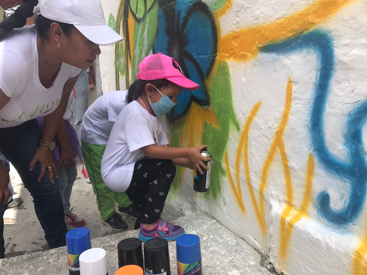 Luego de realizar el recorrido por las calles, los comités se enfocaron en la sede del Centro Infantil Miguel Giraldo, donde el comité de pintura realizó dos murales, uno con el logo de la campaña que ellos mismos diseñaron y el otro con un grafiti junto a los artistas de AK 47, quienes estuvieron apoyando esta iniciativa.